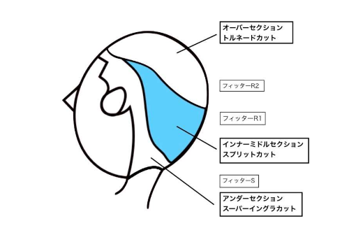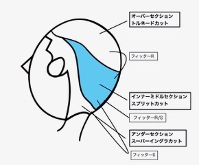 ハチ上のオーバーセクションは、頭蓋骨自体が硬く強度があるため、髪が頭蓋骨を守る優先順 位は低い。髪が弱くなったり、白髪、薄毛になりやすく、ペタッとつぶれやすい部位。